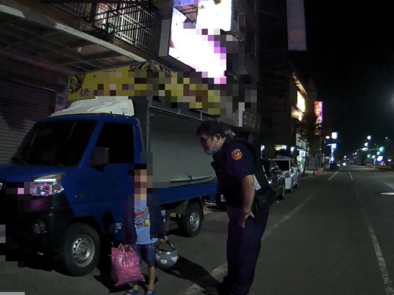 (News586/記者陳宥森報導)永康分局大灣派出所所長林璟翔、警員楊峻堯擔服28日巡邏勤務,於00時33分許接獲民眾報案有1名小孩深夜獨自沿永康區永大路二段行走,險象環生,十分危險,員警隨即驅車前往搜尋,並於永大路二段323號前機慢車優先道上尋得小男孩。