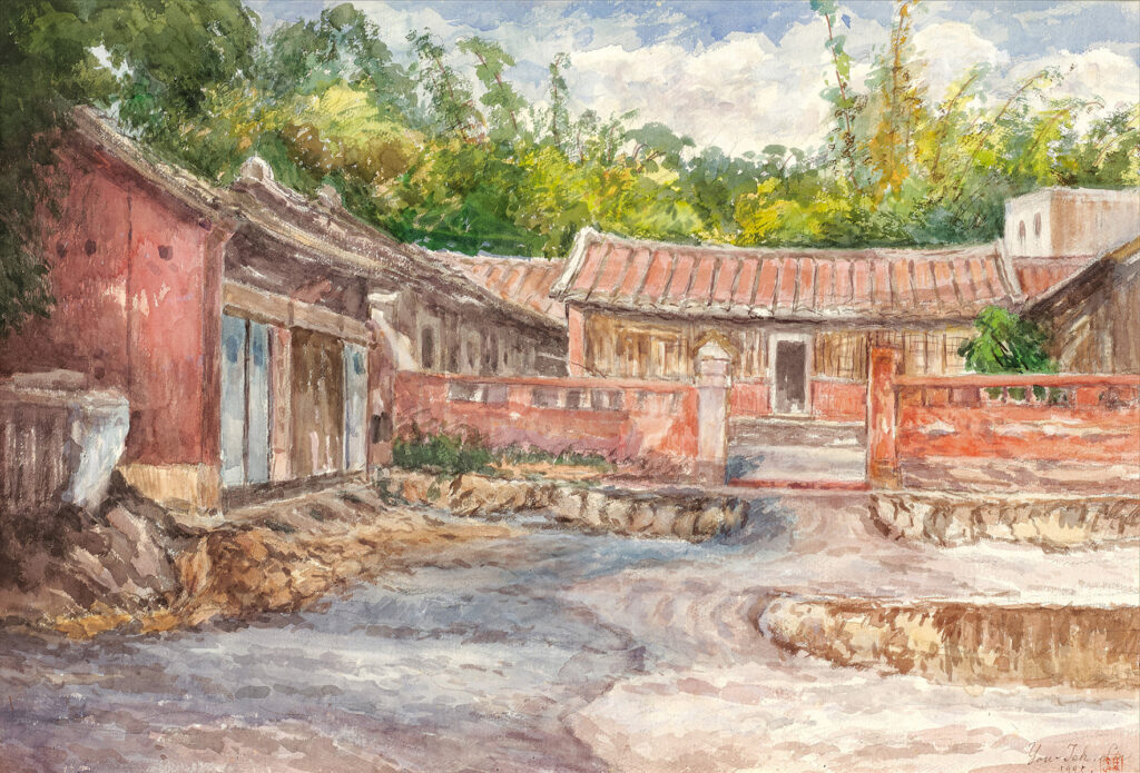 策展人莊明中說明,此次紀念展完整呈現其創作軌跡與時代記憶,《農家》、《眺望》蘊藏著濃郁的鄉情與生活溫度,《豐原老家》則以蜿蜒小徑作為視覺引導,讓觀者彷彿漫步回到那個靜謐的午後。《四合院》、《中正紀念堂》、《女王頭》以戶外寫生手法記錄臺灣地景,而色彩明快的綠植與花卉,點亮了灰褐色的建築群,傳遞著生活美學與人文關懷。