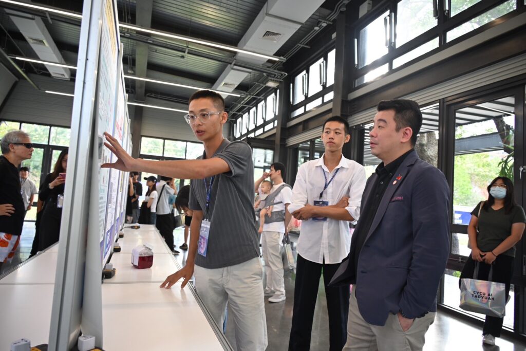 「青年創新成果展現現場,參展團隊成員向貴賓及與會民眾細心解說研發理念與應用亮點。