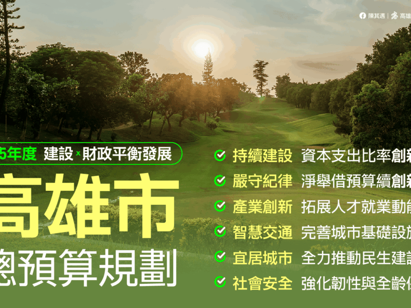 高市府表示,115年度總預算案是在符合公共債務法與財政紀律法等規範下審慎籌編,提高資源運用效益,資本支出比率創市縣合併新高,建設不停歇,市府團隊會秉持初衷,以市民優先奠定永續、韌性、轉型的基礎,讓高雄在國際競爭與城市發展的浪潮中穩健轉型邁進。