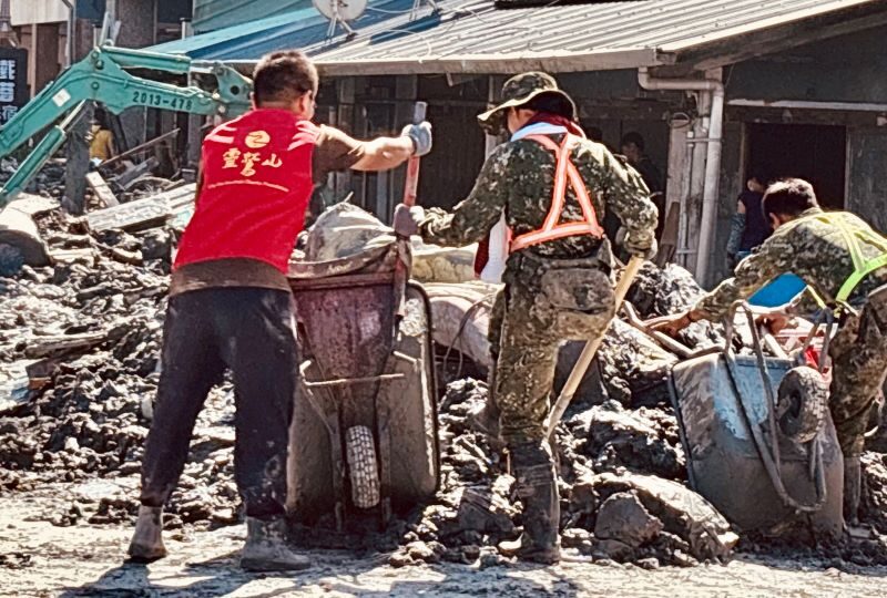 9月30日適逢罹難者頭七,慈善基金會董事長性月法師、花蓮中心監院寶臻法師、慈善基金會副執行長陳世人和志工來到災區,在光復鄉的街道上,與災民並肩在泥濘中手持工具、汗水交織,搬運物資協助清理家園。性月法師說,救援行動不只是一次性的幫助,而是長期的守護,從物資捐贈、志工陪伴,每一步都凝聚社會的力量,靈鷲人的精神展現無遺,災區不再孤單,因為有愛同行。