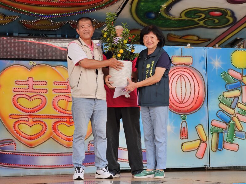 (News586/記者陳宥森報導)柳營區東昇社區照顧關懷據點於114年9月1日正式設置,今(3)日關懷據點滿月且適逢中秋佳節前夕辦理揭牌儀式,台南市政府社會局長郭乃文代表市長前往慶賀,致贈金蛋蜜桔盆景予東昇據點,祝福里內長輩們幸福吉祥安康,期盼據點在大家的努力下,持續開花結果、成果豐碩。現場行政院農業部專委陳右欣、柳營區區長劉發仲、市議員沈家鳳、蔡育輝、趙昆原本人及立法委員賴惠員、林俊憲、陳亭妃、巿議員王宣貿、李宗翰服務處代表,以及柳營代天院主委盧朝仁都前來祝賀。