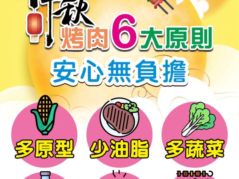 為此,楊珊珊營養師特別整理出「烤肉健康吃 6 原則」,提供民眾實用且簡易的飲食建議,確保大家在中秋團聚時能吃得開心、安心,並有效降低健康負擔: