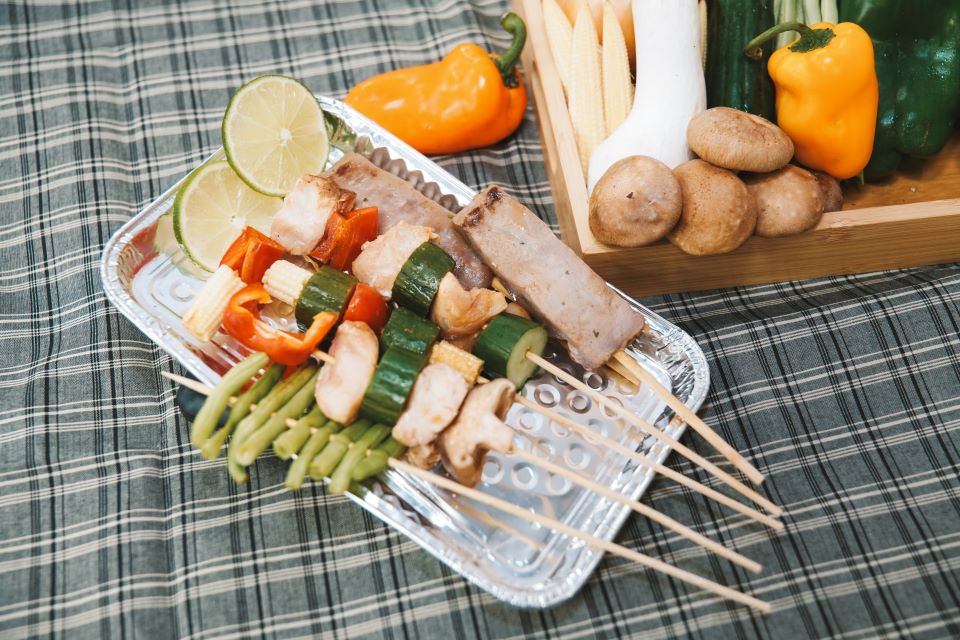 烤肉別忘了加蔬菜!選擇櫛瓜、筊白筍、玉米筍、青椒、甜椒、洋蔥、菇類等蔬菜,富含膳食纖維與植化素,不僅有抗氧化作用,也增加飽足感與整體營養均衡。