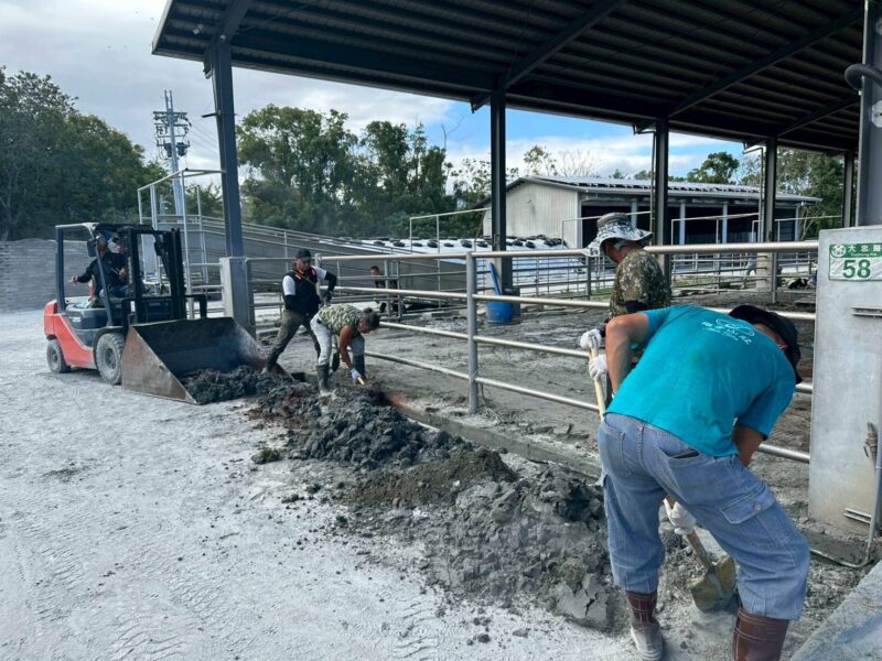清災首站桃園智農團以挖土機、剷裝機、堆高機輪番上陣,協助伊佐牛牧場清災,該牧場受堰塞湖潰堤影響,側溝淤泥嚴重,場主林明技過去曾在桃園龜山養牛,秉持家人幫家人的精神,農耕團有效機械分工,強化作業效率,完成逾300公尺側溝清淤。桃園青農善用一技之長,操作智慧農機具清災,原需1週人力作業時間,縮短至1.5日即完成。