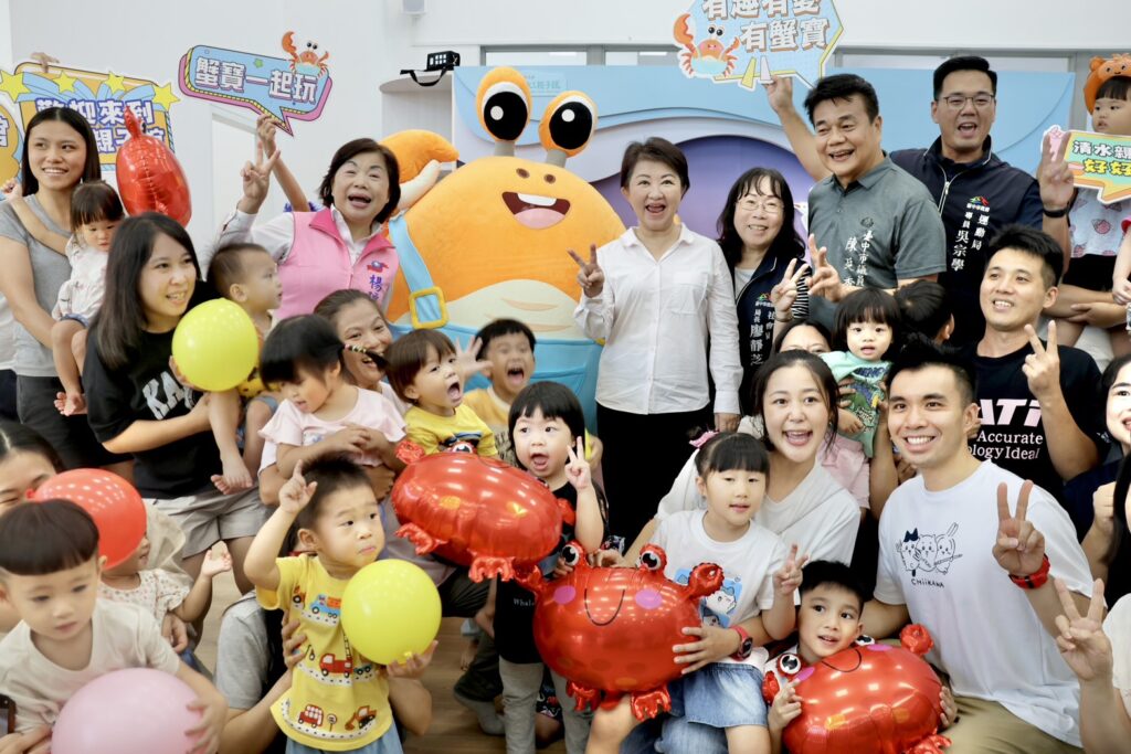 (記者林明佑/台中報導)台中市清水親子館與清水國民暨兒童運動中心今(7)日同步盛大開幕,市長盧秀燕與孩子們一同玩「氣球傘」遊戲,現場氣氛熱鬧溫馨。盧市長與親子館吉祥物蟹寶及親子們合影,寓意清水親子館將陪伴家庭一同築起幸福。今年接下來還有霧峰親子館和東勢親子館陸續開幕,逐步邁向區區親子館,讓家長就近享受育兒資源。