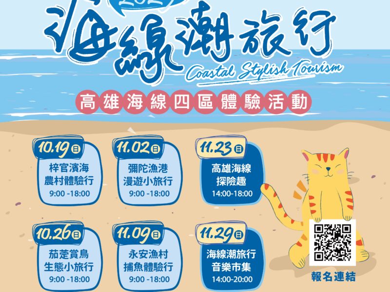 【News586/記者張淑慧報導】## 初秋時節,北高雄漁村海線正是享受超Chill小旅行的最佳季節。高雄海線四區——茄萣、永安、彌陀及梓官不僅擁有豐富的自然生態景觀與農漁村文化底蘊,更是高雄海洋捕撈漁獲與養漁漁業的重要產區。高雄市政府觀光局精心規劃「2025海線潮旅行」活動,推出四條精彩親子遊程:「梓官濱海農村體驗行」、「茄萣賞鳥生態小旅行」、「彌陀漁港漫遊小旅行」及「永安漁村捕魚體驗行」,內容涵蓋漁村巡禮、濕地生態景觀、地方特色美食與趣味DIY手作體驗。即日起民眾可透過官方網站(網址:[https://reurl.cc/ekNYRQ)線上報名參加。觀光局邀請遊客相約前往高雄,感受海風輕拂、品嚐新鮮海味,暢遊海線魅力風光,體驗最道地的漁村風情。