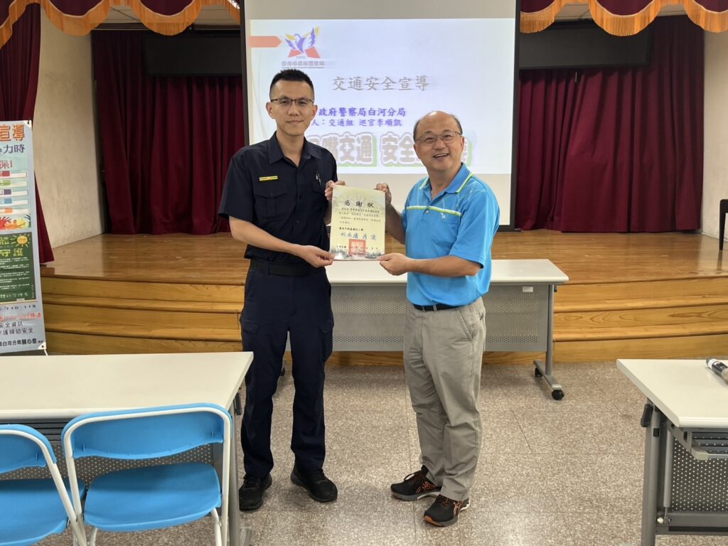 (News586/記者陳宥森報導)白河警分局為貫徹「人本交通」理念,持續強化地方交通安全教育,採取「分眾宣導」策略,近日前往白河國小向學童進行活潑的交通安全知識傳遞,以及在新嘉國小對教師團隊進行專業的交通法規與觀念解說,藉由對不同對象的精準教育,期盼達到「交通安全向下扎根、向上傳遞、向外拓展」的多重效益。
