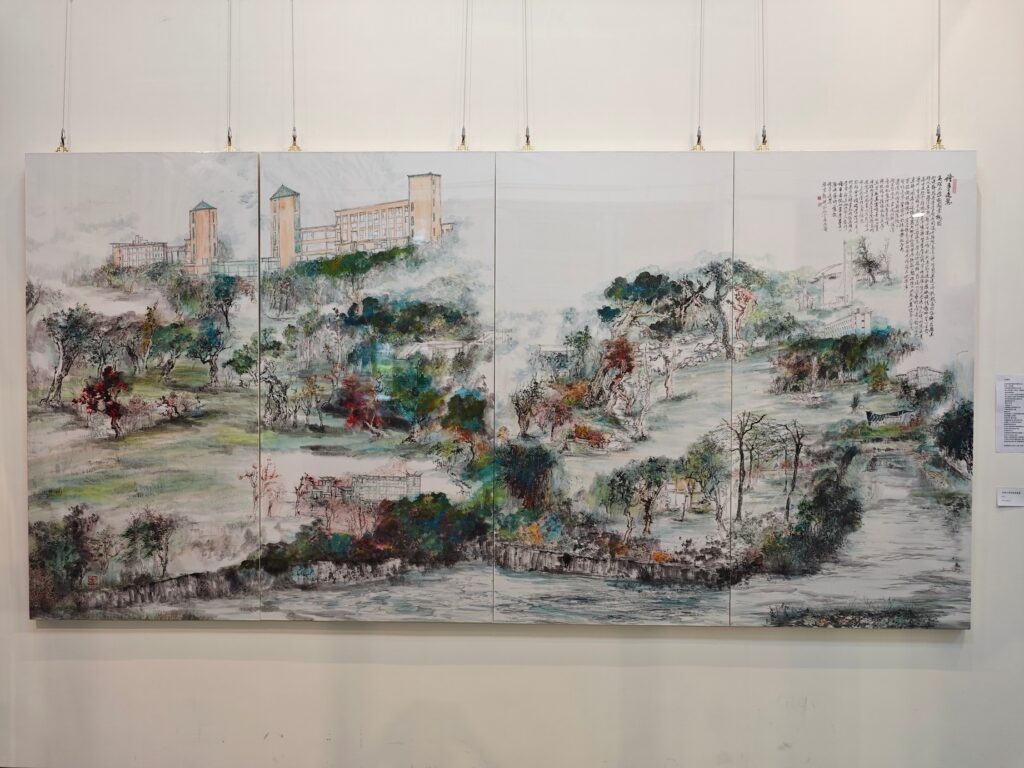 【News586/記者張淑慧報導】國立高雄大學學務處與工藝與創意設計學系(藝創系)於學生活動中心藝綻廳舉辦藝術家張雲龍《繪事是慧》水墨個展8日開幕,展覽以高大校園為創作主題,透過水墨筆韻描繪自然景致與人文風貌,展現學校兼容理性與美感的教育氛圍。展期自即日起至10月底止,每日上午11時至下午4時開放參觀,免票入場。