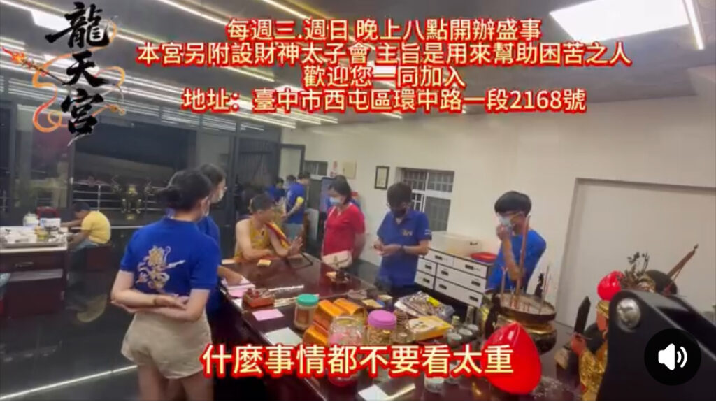 (龍天宮地址:台中市西屯區環中路一段2168號/濟世時間:每週三、日晚間七點半)