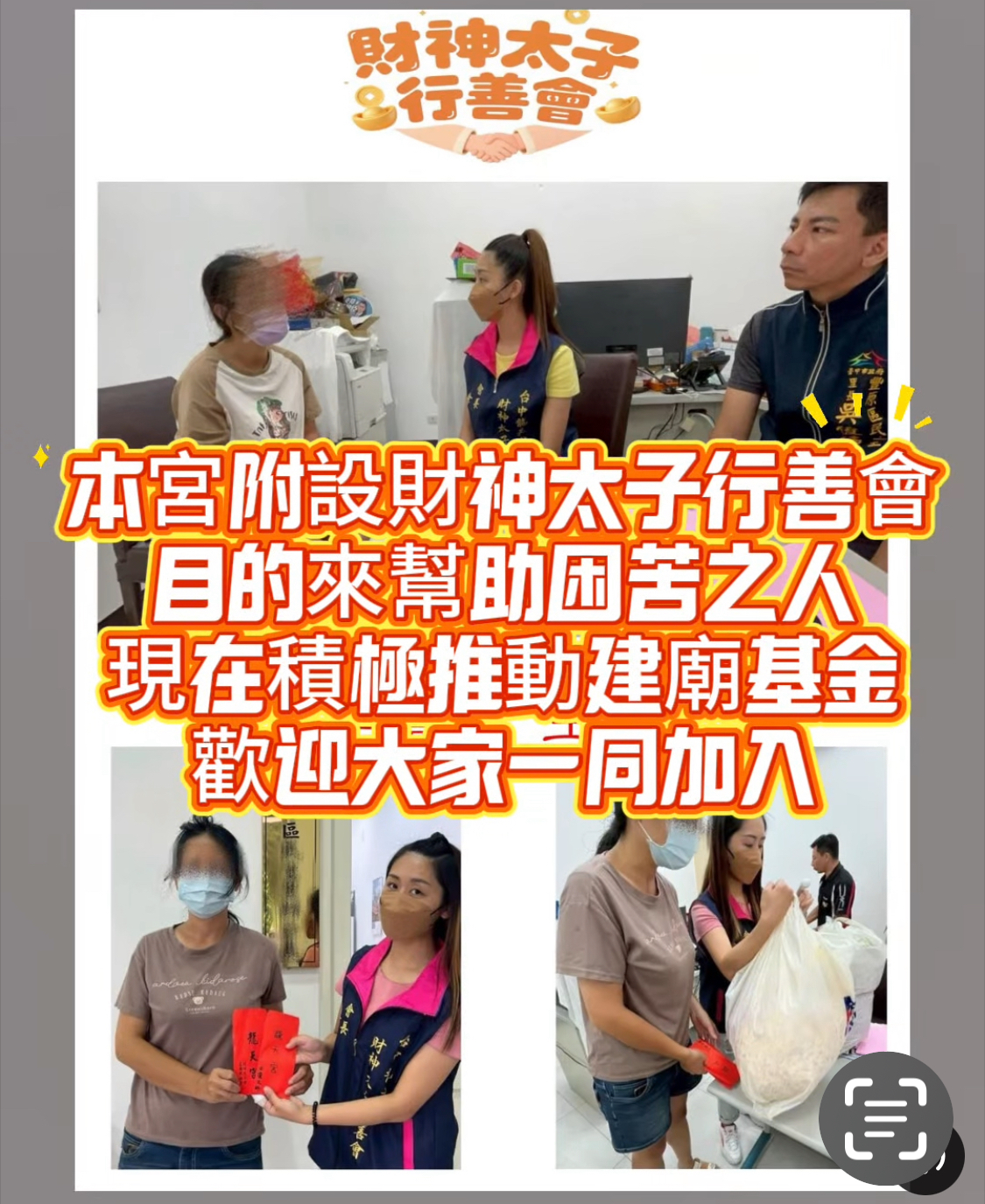 龍天宮的神威與行誼不僅展現於靈驗問事,更落實於實際行動,從急難救助、助學補助、醫療支援到災害捐助,處處可見太子公庇蔭的足跡,協會成員多為熱心公益的企業家、社區志工與善信,皆本著「積德為福」的信念,共同推動善舉。