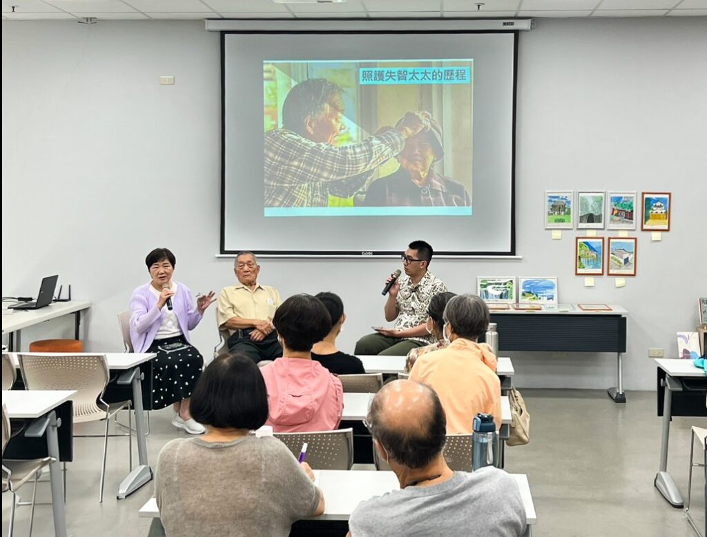 台南市立醫院於鹽埕圖書館舉辦「失智介入課程」邀請失智友善志工-慶雲阿公分享失智症照顧者的心路歷程。慶雲阿公的太太是失智症患者,慶雲阿公長年承受照護壓力。妻子離世後,他一度陷入低潮,女兒May為幫助父親走出哀傷,鼓勵他參加社區大學的「歡樂美術班」。沒想到這堂課,開啟了阿公繪畫的新人生,也讓他重新找回生活的重心。