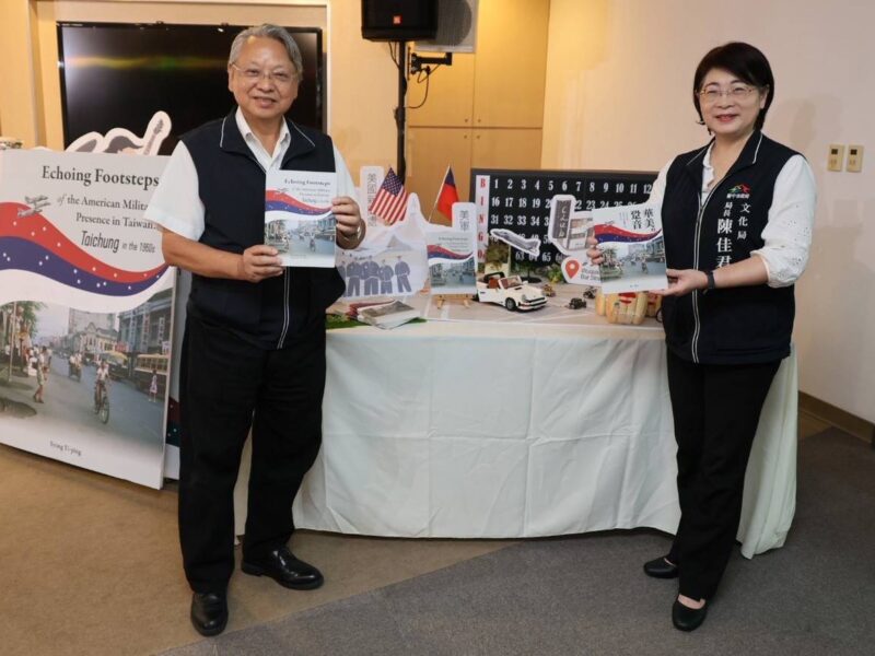 (記者林明佑/台中報導)首度完整記錄1960年代美軍駐紮台中生活風貌與人情故事的國際專書《華美的跫音》英文版,今(14)日正式發表,由台中市文化局長陳佳君及前副市長令狐榮達共同啟動啟航儀式,宣告此書以全新英文譯本姿態登上國際舞台。這此專書透過英文譯本,將台中在美援時期所形塑的獨特文化樣貌推向國際,見證城市在歷史交會下的多元風華。