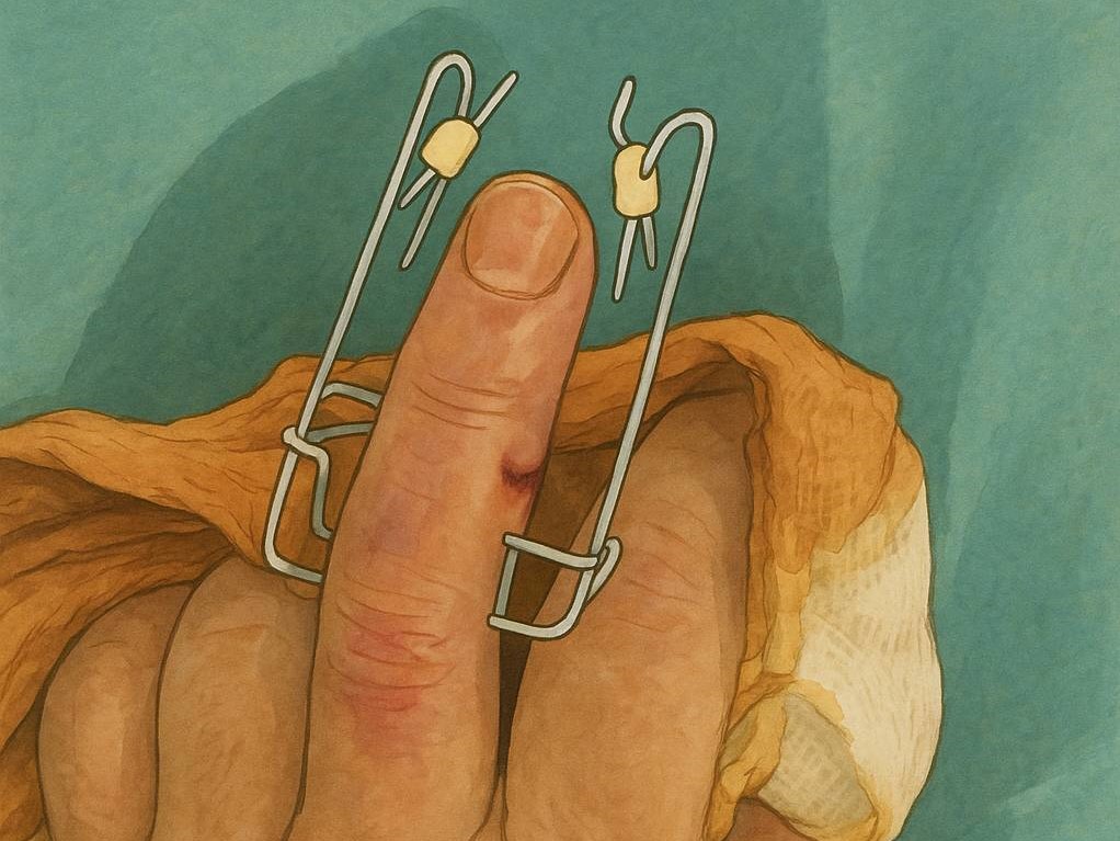 許多人對「手指骨折」的印象,可能是一支鋼針固定即可,但嘉義醫院謝醇樺醫師指出,對於這類破碎且延伸至關節的骨折,傳統鋼針方式效果有限,甚至可能造成手指變形或僵硬,為了給予患者最佳治療,醫師決定採用一項源自日本的特殊技術——Suzuki frame 間接牽引固定法。
