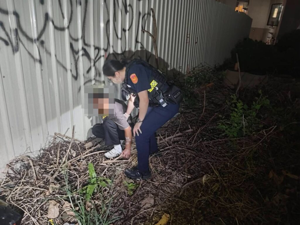 案發於114年10月16日21時許,博愛派出所員警洪宇宏及方宸瑜接獲通報,指稱在轄區中西區衛民街70巷5號附近有可疑人士蹲坐於空地草叢。員警為防範未然立即趕往現場,發現一位高姓老先生(男、45 年次)蹲坐在巷口旁的草叢上,只見高民全身冒冷汗,且雙腳無力無法自行行走。
