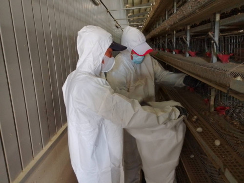 屏東縣動物防疫所於10月13日接獲鹽埔鄉1處鵪鶉場主動通報飼養鵪鶉有異常死亡情形,隨即依標準作業程序啟動防疫機制,迅速派員前往該場進行移動管制、對場區及周邊進行噴灑消毒作業,並採集檢體送農業部獸醫研究所檢驗,於10月15日經研究所確認感染H5N1亞型高病原禽流感病毒,動防所隔日即赴該場執行撲殺作業,現場撲殺118,986隻鵪鶉(種禽3,550隻、產蛋鵪鶉73,436隻、未產蛋鵪鶉42,000隻),並再次督導業者完成場區清潔及消毒工作,及對相關聯場進行回溯追蹤以降低疫情傳播風險。