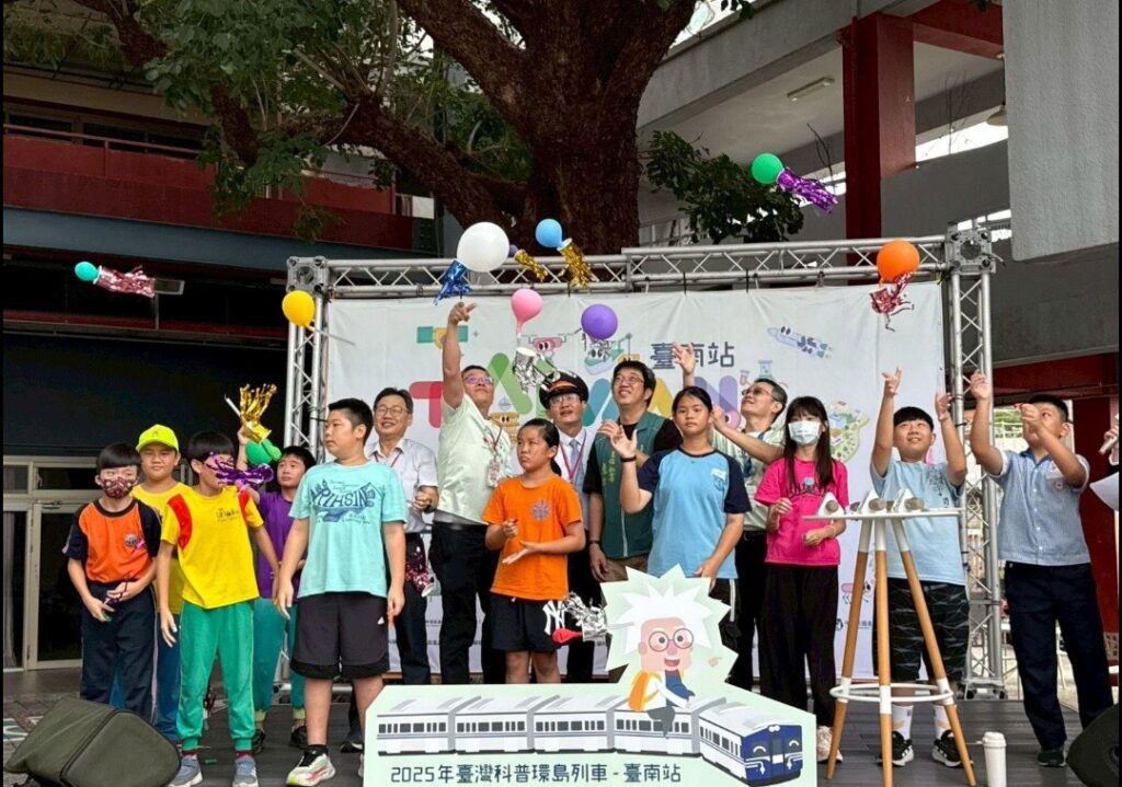 【 News586/ 記者張中俊 報導】「2025年臺灣科普環島列車」今(22)日從臺南站啟程,在臺南火車站旁的文化創意產業園區熱鬧舉行啟動儀式。國科會科長魏智群、專員胡敏琪、臺南市政府教育局主任秘書陳宗暘、臺鐵臺南站長吳文傑及國立成功大學科學教育中心主任徐旭政皆親臨出席,共同見證科學啟程的時刻。現場設有20個互動式科普攤位,主題涵蓋半導體、物理、生物與創意實驗等領域,吸引超過450位臺南師生踴躍參與,現場氣氛熱烈。