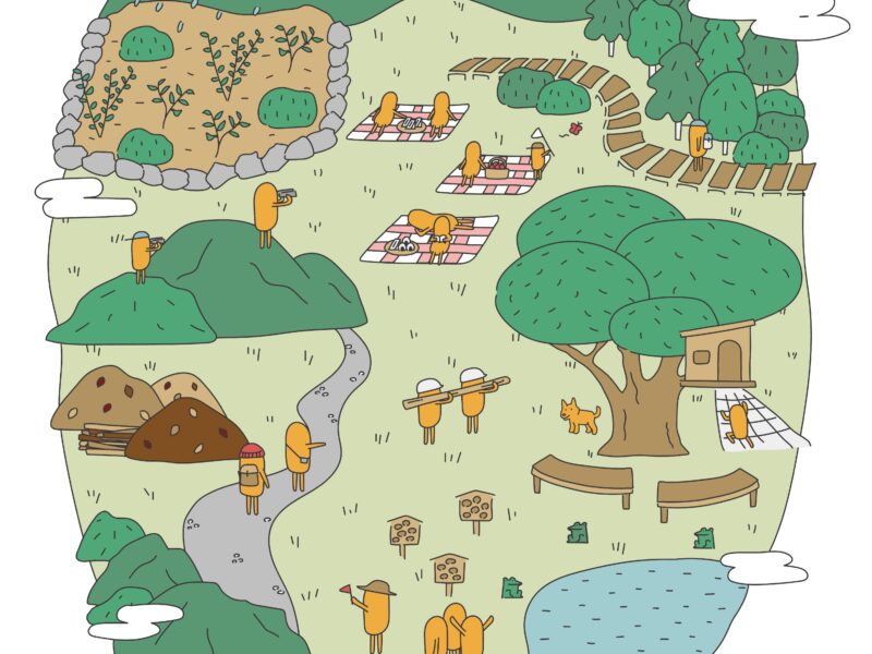 同時,竹編藝術家劉哲安老師也將現場講述作品〈竹編高蹺鴴〉的創作理念,帶領大家感受竹藝與濕地生態融合的韌性之美。「官田街區散策」路線則由陳敏羣老師帶領,從園區出發步行至隆田市場與火車站一帶,透過在地故事與街區紋理的講述,帶領參與者走讀隆田的發展歷史,感受園區與生活圈之間的緊密連結。