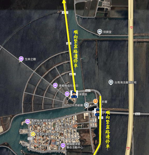 造成特定時段大量車潮湧入青鯤鯓,易造成交通壅塞及交通事故發生,為避免停車秩序紊亂造成交通安全風險,學甲警分局呼籲欲前往觀賞「藍眼淚」之民眾,應沿南25線及南25-1線順向停車,並嚴禁併排停車、占用人行道停車、禁止臨時停車處所(紅線)停車及其他占用道路等易生危害之違規,遵守停車秩序並小心慢行,以免發生交通事故影響遊客興致。