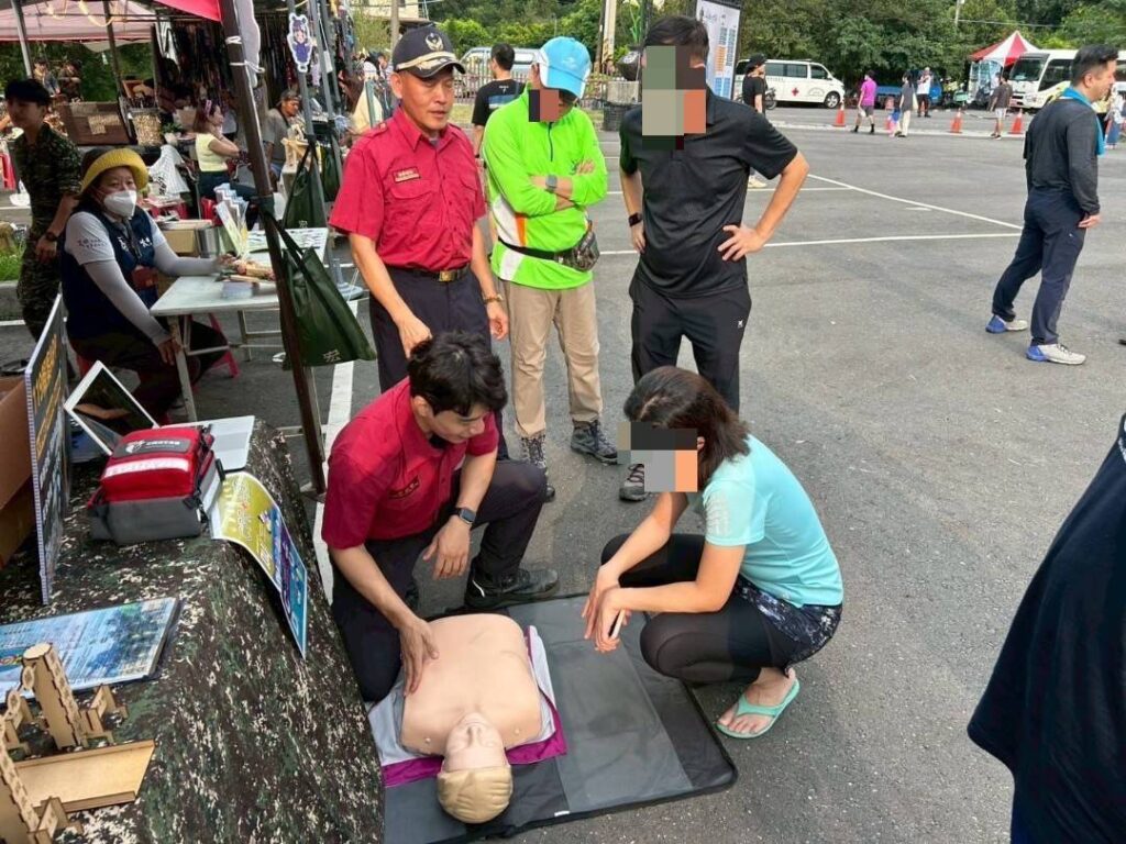 活動現場氣氛熱絡,茂林分隊消防人員透過圖文並茂的看板與實作教學,積極提升民眾的緊急應變能力。消防人員細心講解防災要點,特別強調「趴下、掩護、穩住」的防震三步驟,提醒居民與遊客提高對自然災害的警覺。同時,現場也進行心肺復甦術(CPR)實作教學,讓民眾親身體驗按壓技巧,熟記「叫、叫、壓、電」的救命口訣,有效拉近消防人員與在地居民及觀光客的距離,顯著提升防災知識的學習意願與成效。