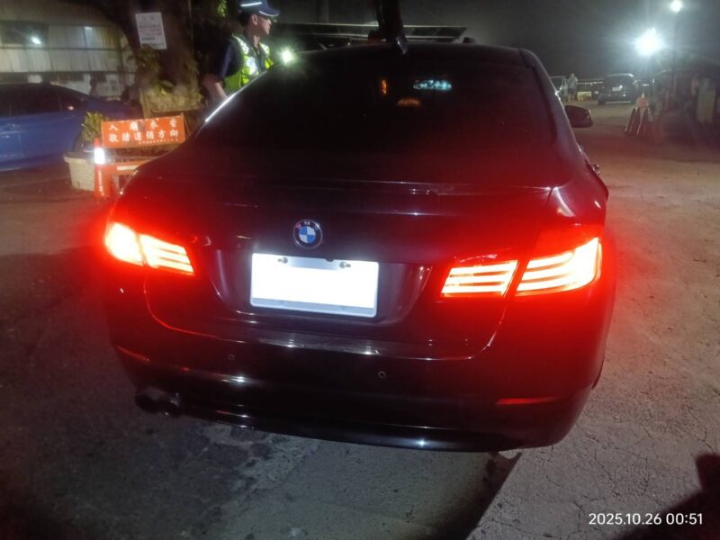 (News586/記者陳宥森報導)白河警昨(26)日深夜在白河區市175線與崁頂福安宮聯外道路執行交通稽查巡守勤務,近凌晨1時眼尖發現一黑色進口轎車雖然懸掛同廠牌車色型號的車牌,但特徵明顯不符,立即依法廣播攔查。駕駛人表示,車輛係向高雄當鋪購買但無法過戶,便以登記於自己名下、廠牌款式相同的車輛車牌替代,當時隨同朋友一起來福安宮拜拜賞景。