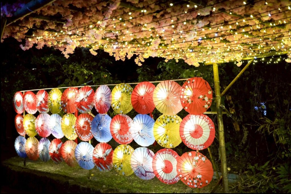 黃偉哲市長表示,關子嶺風景區擁有泥漿溫泉、水火同源、好漢坡、紅葉公園、溫泉老街、火山碧雲寺及大仙寺等特色景點,民眾可先至景點遊覽、泡湯放鬆,再品嚐香氣四溢的桶仔雞與香菇料理等在地美食,肯定不虛此行。即日起至11月24日止,每日傍晚5點至夜間10點,關子嶺溫泉區於寶泉橋、嶺頂公園及大成殿,均設有夜間光環境,大成殿廣場更有展出今年與知名圖文IP「微疼」合作的「微疼版不動明王」及「微疼泡溫泉」氣偶裝置,邀請來一趟夜間漫步山城,沉浸光影氛圍當網美的樂趣。