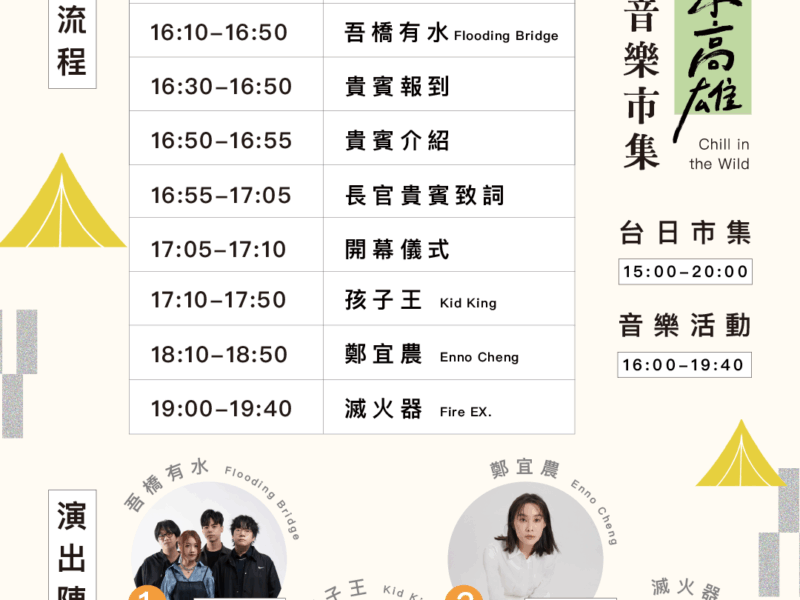 【News586/記者張淑慧報導】秋高氣爽、適合旅遊的秋季,正是體驗高雄溫泉與山林野趣的最佳時機。由高雄市政府觀光局主辦的「野趣東高雄:六龜音樂×市集」,將於11月8日在六龜新開紀念公園盛大登場。活動以「聆聽土地的邀請」為核心概念,特別邀請日本九州熊本地區的特色店家參與,藉由跨越國界的市集展現地方風土特色,並透過在地觀光活動深化台日交流。同時,更邀請滅火器、鄭宜農等金曲獎重量級卡司輪番開唱,搭配超過40家台日攤商共襄盛舉,帶來特色農特產、原創手作與輕食小點等各類美食餐車,邀您走進東高雄,親身感受秋季山林與音樂交織的療癒魅力。