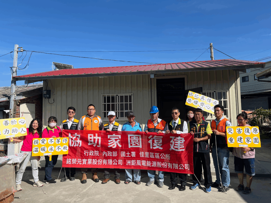 完工儀式由內政部國土管理署南區都市基礎工程分署長林敬賢、科長朱賢鴻、銘榮元實業特助廖品傑、營造業南區職業安全衛生促進會副會長胡家銘、佳里區長林耿漢與下營里長林秉達共同出席,現場氣氛溫馨而感動。林區長特別感謝施工團隊及熱心企業的付出,並表示:「在災後重建的道路上,政府不是單打獨鬥,民間的溫暖與力量,正是支撐弱勢家庭重新站起的關鍵。」