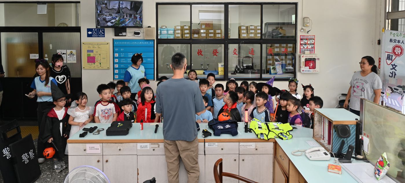 〔News586/記者吳玉芬嘉義市報導〕在萬聖節這週嘉義市政府警察局第二分局特別迎來一群穿著各式可愛服裝的幼兒園小朋友們,超級英雄、童話公主、妖精幽靈紛紛現身分局大廳,小朋友們手拿糖果袋,興奮地高喊「不給糖就搗蛋」,讓平日嚴肅的辦公氣氛瞬間變得熱鬧又溫馨。