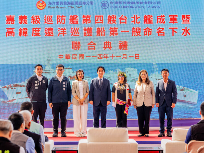 台灣國際造船股份有限公司(簡稱台船公司,股號:2208)承造海洋委員會海巡署艦隊分署的4艘4000噸級巡防艦及6艘高緯度遠洋巡護船,於今(1)日上午10時舉行「嘉義級巡防艦第四艘台北艦成軍暨高緯度遠洋巡護船第一艘命名下水聯合典禮」。典禮由總統賴清德主持,海洋委員會管碧玲主任委員、台船公司董事長陳政宏、高雄市長陳其邁、原住民族委員會主任委員曾智勇(Ljaucu‧Zingrur)、多位立法委員及產官學研界人士共同見證。此次命名的巡護船「西拉雅號」(SIRAYA)由西拉雅族代表萬淑娟(Uma‧Talavan)女士完成擲瓶儀式,象徵支持平埔族群原住民正名的意義。
