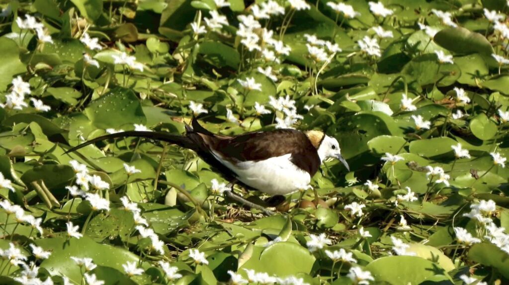 輕盈優雅、被譽為「凌波仙子」的水雉,每年4月至9月繁殖季,會在湖面浮葉型水生植物上築巢育雛,形成極具觀賞價值的自然景觀。搭配賞鳥觀察與導覽活動,讓民眾能近距離觀察鳥類行為、親身體驗濕地生態與水草復育成果,更能感受自然與生命共融的力量。