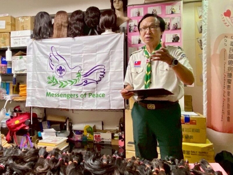 【News586/記者彭慧婉報導】由桃園市童軍會主辦的第八屆MOP(和平使者)捐髮活動今日於臺北市北投區社團法人中華民國癌病腫瘤患者扶助協會順利完成捐贈儀式。今年活動期間從九月份開始由全國各地一起協辦的27個童軍團進行愛心捐髮活動的推廣與募集,兩個月期間共同募集377束的捐髮以及14萬9千422元的捐款,今日的捐贈儀式中由桃園市童軍會副總幹事胡暐金代表全體,悉數捐給中華民國癌病腫瘤患者扶助協會,理事長楊哲鈞感謝童軍團體發揮童軍精神號召社會各界投入愛心公益造福癌友。
