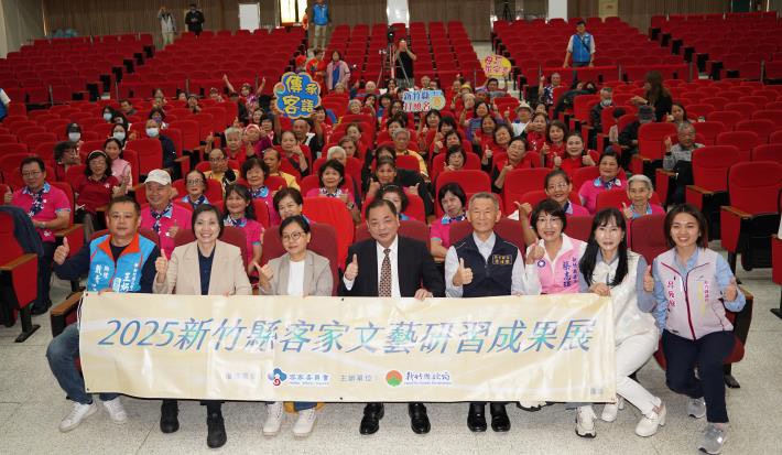 【News586/記者黃誌寬報導】推動客家語言與藝術素養深耕,新竹縣政府2日上午於縣府大禮堂舉辦「2025新竹縣客家文藝研習成果展」,地方民代、鄉親朋友齊聚一堂,共同見證這場融合傳統和創新的音樂盛典。副縣長陳見賢為活動揭開序幕,強調傳承客家語言的重要性,讓下一代不忘本,大聲說出「我是客家人」。