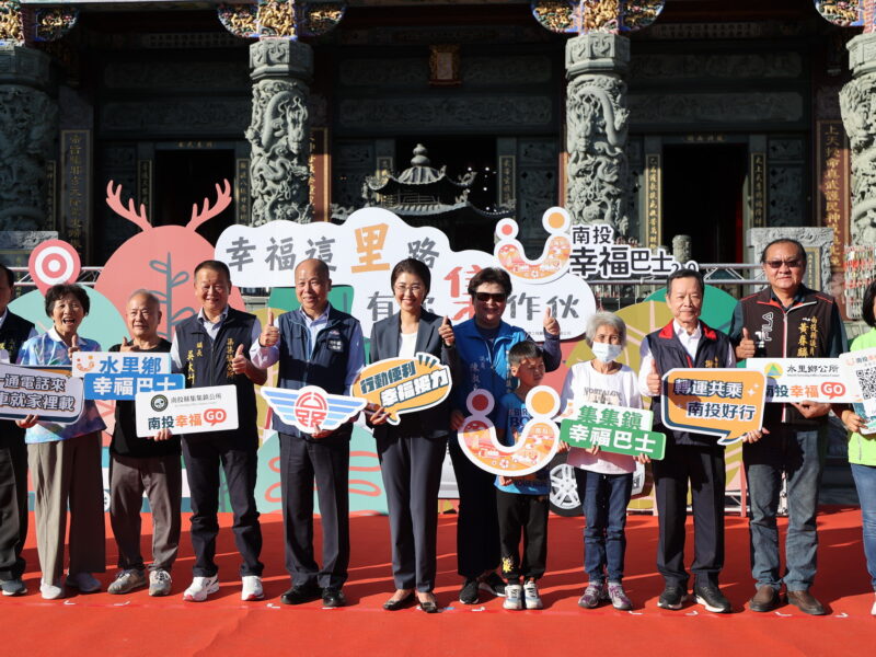 【News586/總社長孫崇文報導】南投縣政府推動的「南投幸福GO」幸福巴士,經過三個月試營運後,於11月5日在集集鎮武昌宮廣場舉行水里鄉與集集鎮正式通車典禮。縣長許淑華在多位縣議員、鎮長、里長及地方民眾見證下,宣布兩鄉鎮幸福巴士正式營運,並於6日起開始收費服務。