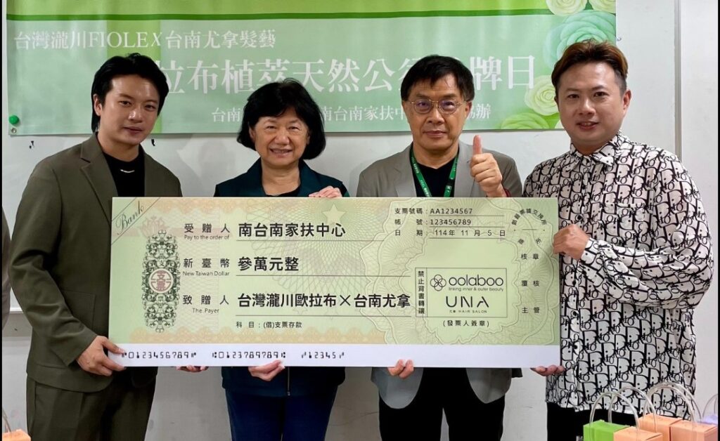 受贈單位財團法人台灣兒童暨家庭扶助基金會台南市南區分事務所李保良主任表示,善款將用於支持弱勢家庭生活補助與青少年課後照顧服務。「感謝尤拿髮藝成大館及台灣瀧川有限公司的善舉,這筆捐款不僅是一份資源,更是一份關懷,讓我們在服務的路上更有力量。」