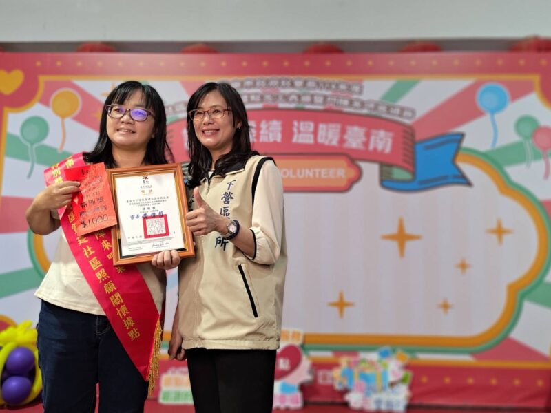 此次活動中,下營社區發展協會的陳顏𤖂、陳美鳳兩位志工,以及甲中社區發展協會的湯壽、洪瑞安兩位志工,憑藉多年在社區關懷據點投入長者服務、餐食供應與陪伴活動的努力,榮獲「模範高齡志工獎」,充分展現高齡志工持續奉獻與活躍老化的精神。
