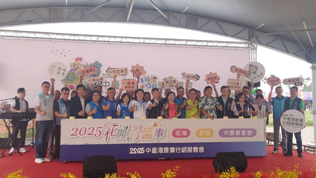 【News586/記者黃誌寬報導】「2025中台灣農業行銷展售會」今(8)日在台中市新社區種苗改良繁殖場二苗圃熱鬧登場,今年以「2025花開3盛事–花海、花毯、中農展售」為主題,舉辦為期23天的農業盛典,吸引全台民眾共襄盛舉。新竹市政府由產發處長嚴翊琦代表出席啟動儀式,與中臺灣8縣市攜手推廣地方農特產品,展現農業創新與永續發展的豐碩成果。
