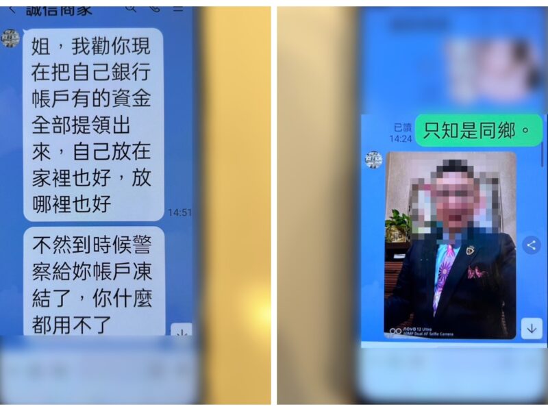 員警到場查處後瞭解,徐女是透過1名自稱同樣住在離島的「老鄉」介紹,聲稱有投資虛擬貨幣(USDT)的項目,保證「穩賺不賠且高獲利」。後續,又有1名LINE暱稱「誠信商家」的帳號勸誘她「將帳戶有的資金全部領出」,否則會導致「帳戶被凍結」等話術,讓徐女心生恐慌而急於提領。