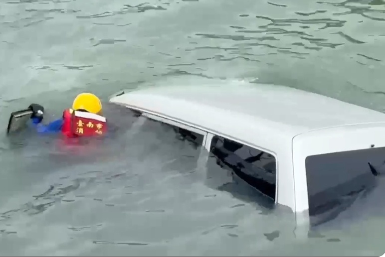 臺南市政府警察局,新營警分局柳營分駐所,所長郭南佑,受訪表示:新營警分局於今日上午11時20分許獲報,在柳營區義士路段旁嘉南大圳有車輛落水。