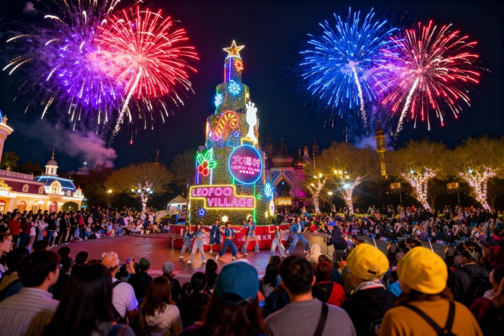 圖/六福村跨年夜以繽紛煙火、巨型耶誕樹燈光秀與熱力十足的現場舞蹈表演掀起最高潮,吸引大批民眾齊聚園區共度歡樂倒數時刻