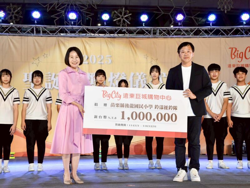 遠東巨城11/15日舉辦聖誕樹點燈儀式,邀請民眾迎接節慶溫馨時光。今年廣場矗立15米高聖誕樹,以金紅交織的燈光象徵溫暖祝福,流動七彩的光影寓意業績與喜悅的延續,樹身綴滿雪花,以巨大的蝴蝶結與緞帶包裹著阿Mall與Mall妹,為冬季獻上最誠摯的禮物。現場活動以「藝起發光」為主軸,特邀請震撼人心的「原聲打擊樂團」揭開序幕,隨後由世界冠軍「後龍國小鈴漾扯鈴隊」演出並舉辦贊助儀式,繼新竹女中、台灣原聲教育協會之後,將與後龍國小展開長期教育資助計畫,以實際行動推廣藝術教育、支持年輕學子在舞台上發光發熱,亮燈後,邀請多組新竹在地學校社團登台演出,以真摯表演為整場點燈儀式畫下圓滿句點。