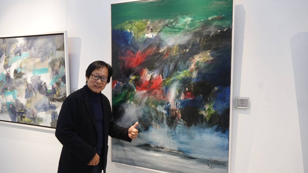 黃意會1954年出生於新加坡,1979年新加坡南洋大學畢業,同年舉辦第一次個人畫展。他自學繪畫,精通油畫、山水畫、雕塑等,是一名傳奇的畫家。創作融合西方抽象與東方山水的靈動,黃意會被譽為「自由意會派」;筆下的風景不止於自然,更流動著情感與記憶,畫面中線條、色塊與光影交錯,如詩般傳達內心的自由與任性。畫作中可見,油彩層層堆疊出情緒的深度,將懷念化為色彩的流動,讓觀者在光影之間感受「穿入花間,踩碎樹影,與日月同行」的生命能量。