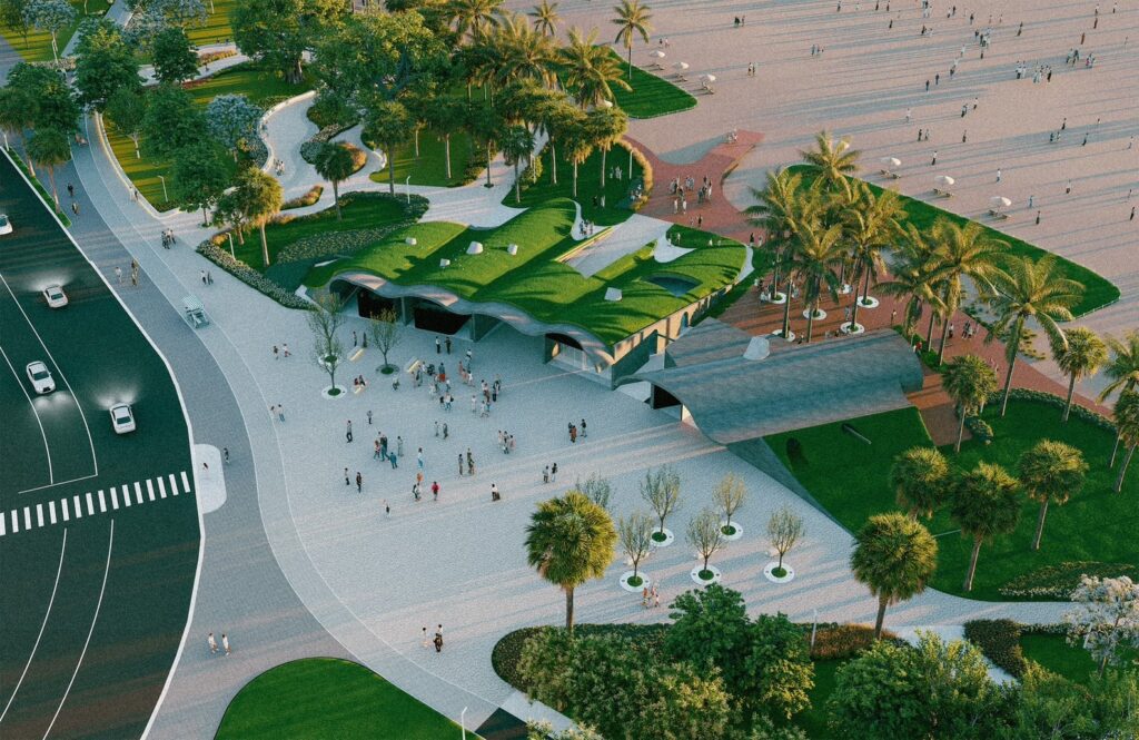林副市長欽榮指出,本次開工的「旗津海水浴場建築及環境營造統包工程」為高雄「灣區大港.旗津領航」計畫重要項目,委託邱文傑建築師設計,整體建築與景觀營造融入沙丘、綠洲與海洋意象,打造兼具生態、文化與美學的海島風貌,提供更舒適、安全的遊憩環境。本工程未來將增設遊客服務中心,建置全新海水浴場救生站、遊客淋浴區暨公廁、Sunset Bar等服務設施;並改善既有景觀及動線,納入全齡及性別友善、穆斯林等國際觀光客需求,強化友善觀光設施。