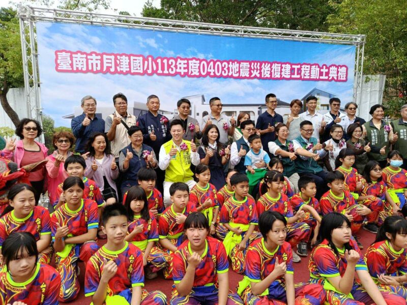 (News586/記者陳宥森報導)因0403地震受損的月津國小中棟、南棟A校舍,整建工程動土奠基典禮於今(18)日上午在學校臺灣獅隊鑼鼓喧天的精采演出與社區家長的熱情祝賀聲中揭開序幕,臺南市政府副秘書長徐健麟、教育局副局長楊智雄、家長會長蔡振宏及多位民意代表、家長、社區民眾與師生觀禮下進行動土典禮,斥資1億7,438萬餘萬元,以「月津展風華」為特色的嶄新校舍預計於116年4月完工。