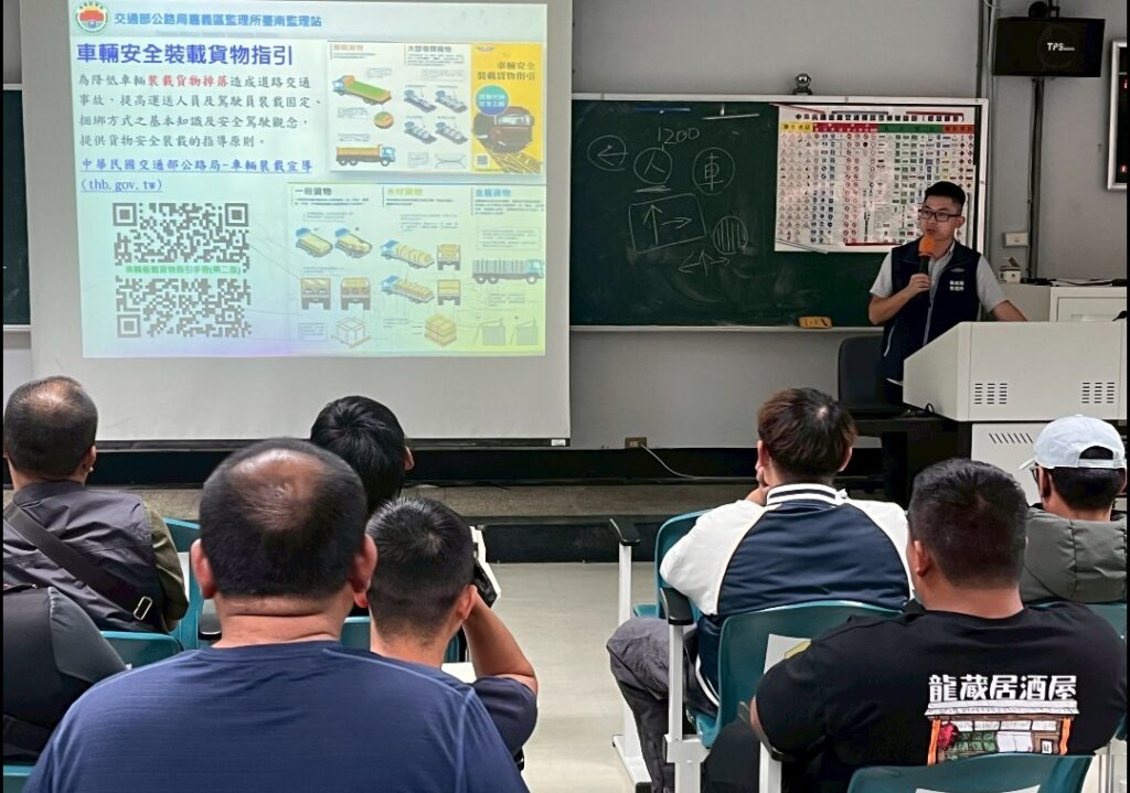 臺南監理站也透過本次課程提醒貨運駕駛,應落實平時例行性檢查及出車前各項檢查,勿酒後開車、疲勞駕駛,出車前應確認裝載貨物已捆綁穩妥、覆蓋嚴密,行進中應確實注意後車斗或吊臂設備收闔,路邊卸貨時應遵守貨車尾門升降機操作注意事項,駕駛車輛全程更應隨時留意車前狀況並提高注意力、遵守交通安全規定,以維用路人安全。