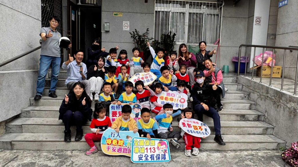 活動最後,全體小朋友與分局警察合照留念,孩子們笑容燦爛,也讓警察叔叔阿姨感受到孩子們的熱情與敬意。此次活動不僅讓孩子們了解警察日常工作,增進安全與防護觀念,也希望透過寓教於樂的方式,培養孩子尊重法律、關心社會的良好態度。