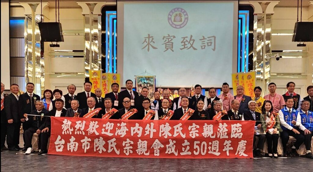 三獻大禮祭祖結束,於富霖宴會館舉行50週年慶祝活動,會場恭請陳姓先祖開漳聖王陳元光、忠順王陳邕及開基永華宮陳永華總制(諮議參軍)等三尊陳姓祖神金尊,具千年歷史的忠順王陳邕神主亦一同坐鎮,見證臺南市陳氏宗親會50週年紀念歷史性的一刻。