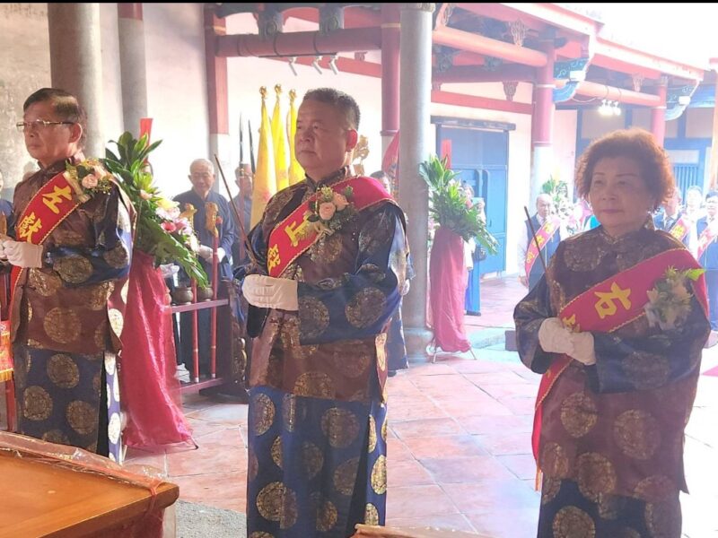 【 News586/記者張中俊 報導】今年是臺南市陳氏宗親會成立50週年,適逢市定古蹟明統領府陳德聚堂適逢建祠360年。22日上午臺南市陳氏宗親會理事長陳衫潤、陳德聚堂主任委員陳百棟,以及來自海內外各地的陳氏宗親代表,一同齊聚陳德聚堂,以古禮三獻大禮祭祖,場面莊嚴隆重。