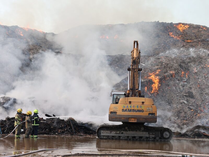 環保局表示,昨晚在第一時間調派五台挖土機、十台水車到場,配合消防局投入滅火作業,同時出動移動式空氣品質監測車於下風處監測空氣品質並完成通報,後續也將持續密切追蹤監測數據。