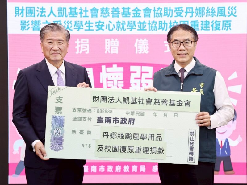 凱基社會慈善基金會協助災區學生安心就學與校園復原 黃偉哲市長親頒感謝狀表揚善舉